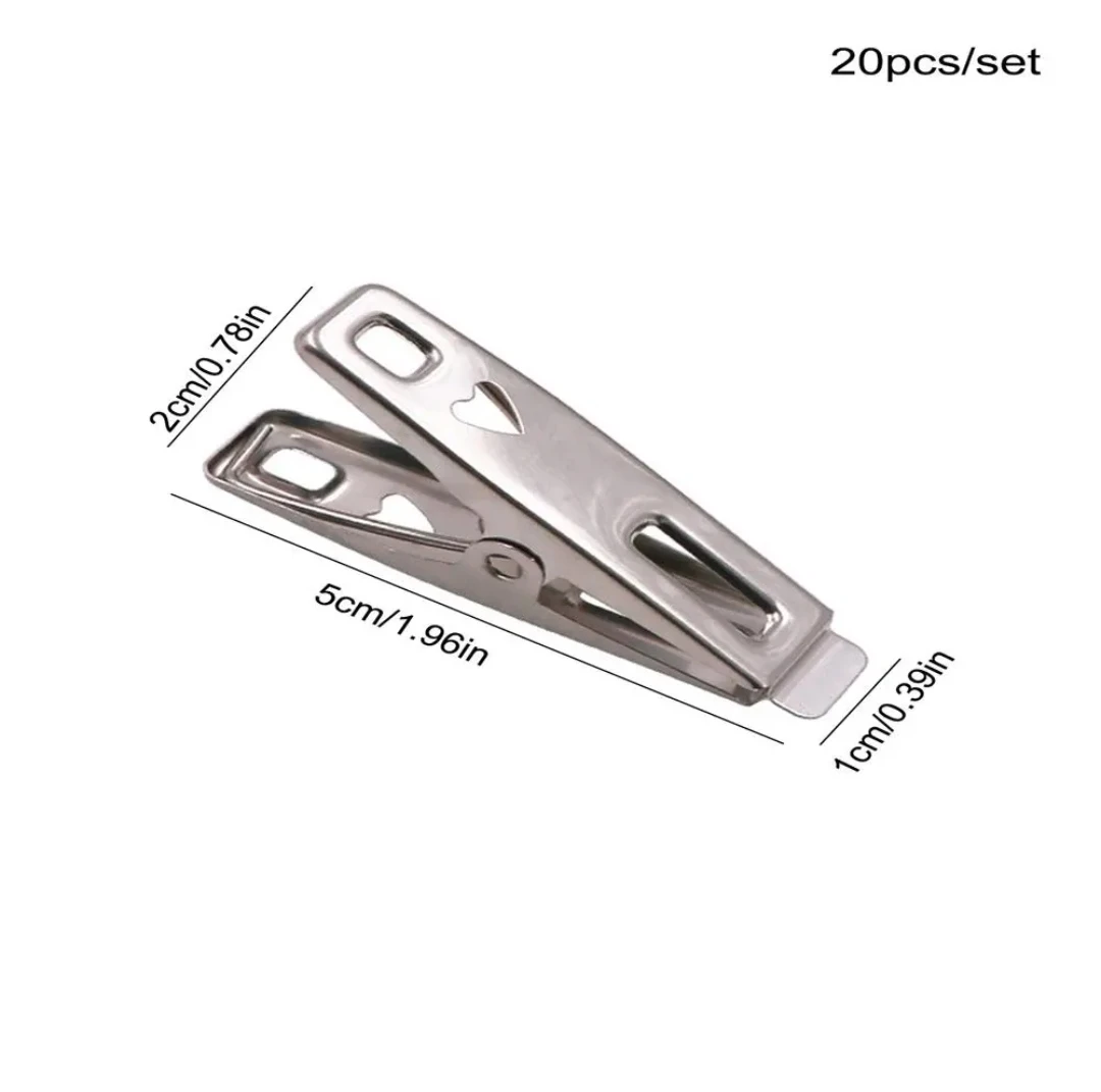 20 قطعة من مشابك الغسيل المصنوعة من الفولاذ المقاوم للصدأ، مشابك الملفات، مشابك الملابس شديدة التحمل، مجموعة المشابك المعدنية، مشابك الملابس المعدنية لإغلاق الملابس والجوارب والأطعمة