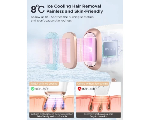 إزالة الشعر بالليزر بشكل دائم: يستخدم جهاز إزالة الشعر بالنبض الضوئي تقنية الضوء النبضي المكثف (IPL) لتقليل نمو الشعر غير المرغوب فيه. يمكن أن يصل الضوء المتقطع مع طاقة عالية 5 جول/سم مربع وطول موجي 600 نانومتر إلى بصيلات الشعر لكسر دورة نمو الشعر، وقتل بصيلات الشعر بشكل أكثر كفاءة وأمان. في غضون 12 أسبوع، سترى شعر أقل بنسبة تصل إلى 97%. 9 مستويات طاقة ووضعين للوميض: تم ترقية جهاز إزالة الشعر بالليزر بـ 9 مستويات طاقة ستتكيف مع مناطق البشرة المختلفة وسرعات نمو الشعر المختلفة، مما يمنحك معالجة أكثر دقة. الوضع التلقائي واليدوي مناسب لمختلف مناطق الجسم. أحدث جهاز يعمل باللمس لإزالة الشعر سهل التشغيل. عناية مطورة للتبريد بالثلج: جهاز إزالة الشعر بالليزر للنساء مع ميزات العناية بالثلج، يمكنها تبريد البشرة أثناء انبعاث الضوء النبضي. درجة حرارة البشرة منخفضة تصل إلى 8 درجات مئوية، تهدئ الإحساس بالحرقة ولن تسبب احمرار الجلد. مما يجعل علاجات إزالة الشعر غير مؤلمة ولطيفة على البشرة. إزالة الشعر بالليزر في المنزل: جهاز إزالة الشعر بالليزر مزود بـ 999,999 ومضة، واستخدام أطول مرتين من أجهزة 500,000 ومضة في السوق. يمكنك مشاركتها مع جميع أفراد العائلة والأصدقاء. الوزن الصافي للمنتج 300 غرام فقط. سهل الحمل والتخزين. إنه أصغر جهاز لإزالة الشعر في السوق. |