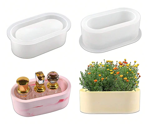 قوالب سيليكون ثلاثية الأبعاد لزهريات مستطيلة الشكل، حامل شموع، صندوق تخزين مستحضرات التجميل، عمل فني وزهريات النباتات الناضجة، قالب جبس وراتنج للصناعات اليدوية والديكور والهدايا