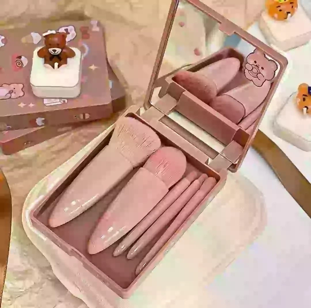 مجموعة فرش المكياج سهلة الحمل للسفر من اميرتير، 5 قطع مجموعة فرش مكياج صغيرة مكت