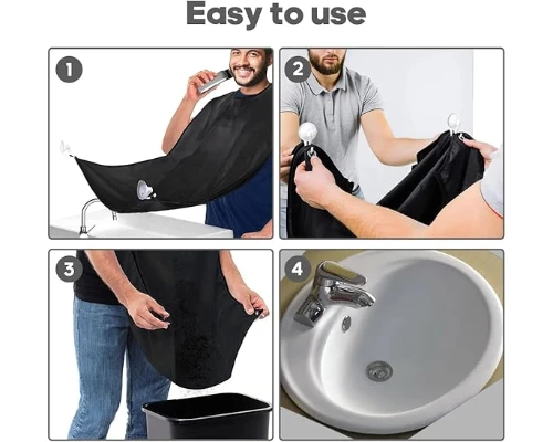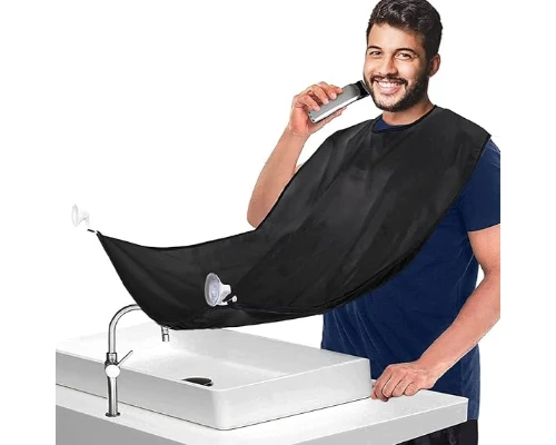 مريلة حلاقة للرجال من اناتوم، حزام قماشي شفاف بكوب شفط للعناية وتنظيف اللحية هدية للرجال (اللون اسود)