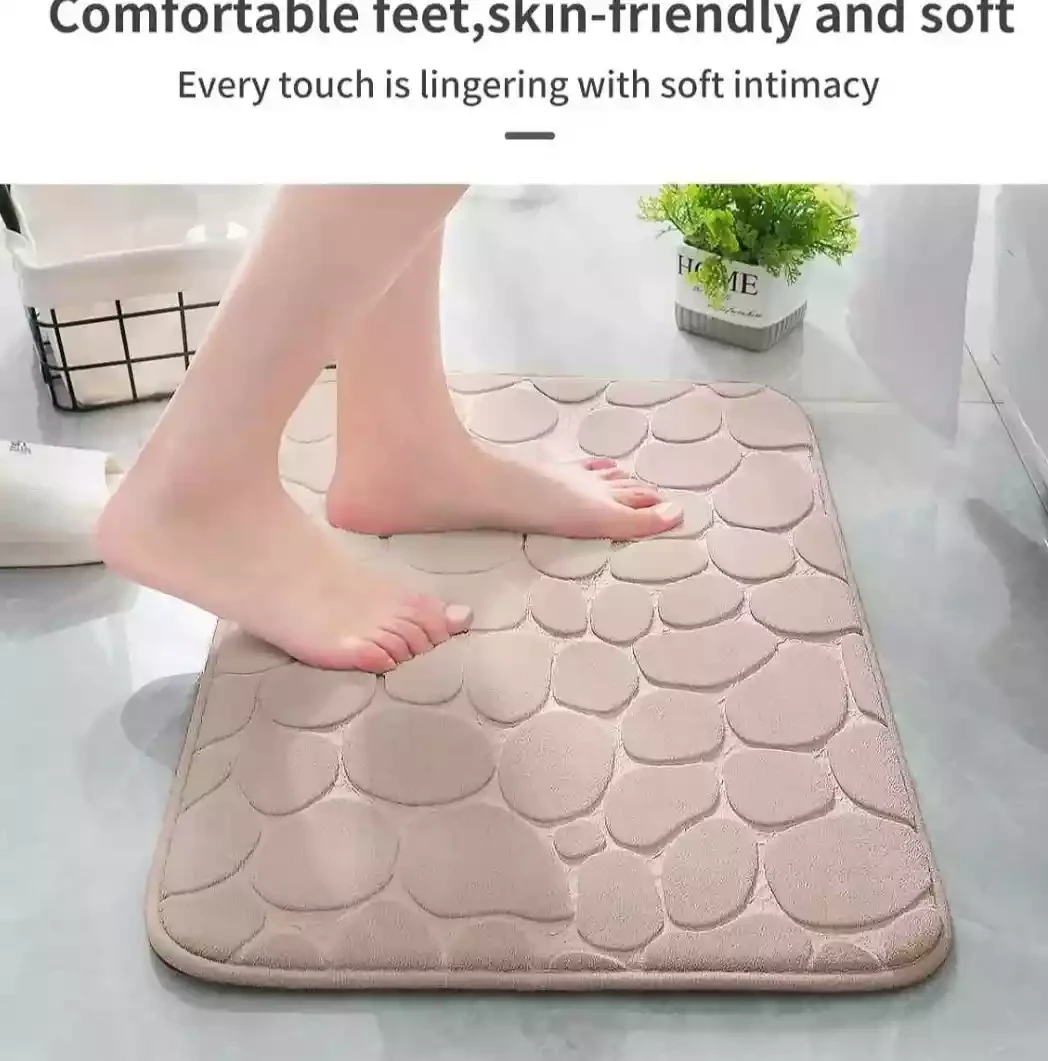 سجادة حمام من الميموري فوم بتصميم مرصوف بالحصى فائقة الامتصاص للماء وقابلة للغسل