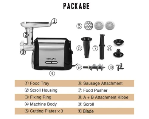 الموادالفولاذ: المقاوم للصدأ القوة الكهربائية: 3200 واط الاستخدامات الموصى بها للمنتج: طحن اللحوم ، صنع النقانق ، تحضير الكبة استخدامات محددة للمنتج: الطحن الجهد: 220 فولت الشركة المصنعة: سوكاني |