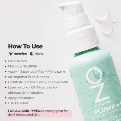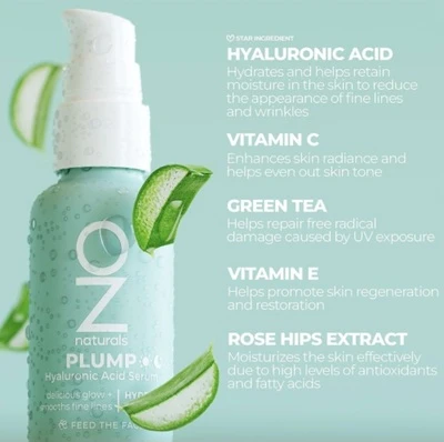 سيروم حمض الهيالورونيك للوجه من اوز ناتشورال لبشرة نضرة مليئة بالحيوية سيروم للوجه من اوز ناتشورال يعيد التوهج الصحي لبشرتك يعمل على ترطيب البشرة ويقليل ظهور الخطوط الدقيقة و التجاعيد. يأتي بتركيبة فريدة من حمض الهيالورونيك و فيتامين سي و فيتامين إي بالإضافة إلى مزيج من الشاي الأخضر. يتم امتصاصه من قبل البشرة بشكل سريع ولا يترك أي ملمس لزج مزعج عليها. خالي من المواد الكيميائية الضارة لذلك يناسب جميع أنواع البشرة. لا يسبب تهيج أو تحسس وخاصة للبشرة الحساسة. مناسب للبشرات المتقدمة بالعمر لتحفيز البشرة على إنتاج المزيد من مادة الكولاجين لجعلها أكثر مرونة وامتلاء. يجدد البشرة ويرطبها بعمق. يترك البشرة ناعمة ونضرة. مقاوم للتجاعيد. قوام خفيف على البشرة. يعزز إشراق البشرة. يفتح البقع الداكنة. المعلومات: مناسب لجميع أنواع البشرة. المكونات: حمض الهيالورونيك اسيد النباتي، فيتامين ج، شاي أخضر، فيتامين هـ ، مستخلص روز الوركين، فيتامين E، فيتامين C. طريقة الاستعمال: