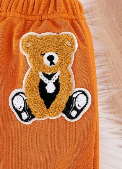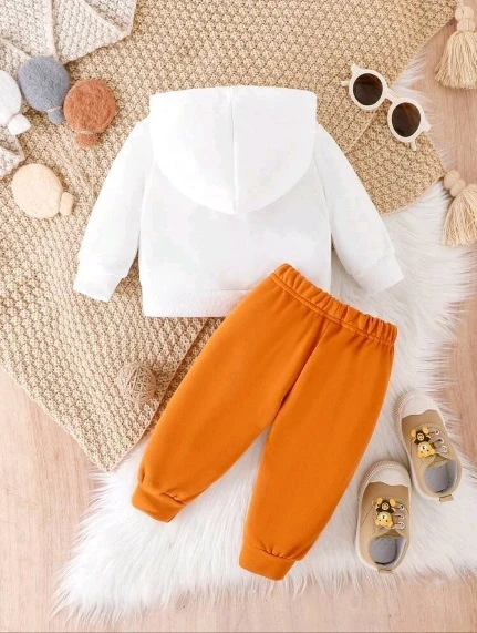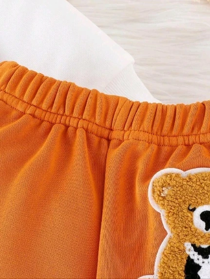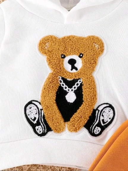 طقم رياضي للأطفال الرضع يتألف من ملابس سويت شيرت ذو غطاء على شكل دب مصلح مع بنطلون رياضي