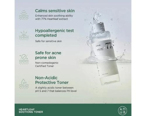تونر مهدئ هارتليف 77% من أنوا لتهدئة البشرة وتلطيفها تونر أنوا فائق الترطيب غني بـ 77% من مستخلص هوتوينيا كورداتا التي تعمل على تهدئة البشرة. بالإضافة إلى أحد عشر مكونًا آخر من المكونات الخضراء لتهدئة وحماية البشرة الحساسة. تونر هارتليف مستخلص الهارتليف معروف جيدًا بتأثيره المضاد للالتهابات والمهدئ على البشرة. يساعد الرقم الهيدروجيني الحمضي المعتدل على تنظيم مستويات رطوبة البشرة الدهنية. تونر أنوا هارت ليف يساعد على تهدئة البشرة الحساسة وحماية البشرة من التهيج والحساسية. قوام مائي مثالي سريع الامتصاص لتوفير ترطيب خفيف الوزن وقابل للوضع عدة مرات. يحافظ على توازن الزيوت في البشرة كما ينقي البشرة ويوحد لونها. ينقي البشرة وينظفها. يوحد لون البشرة. يرطب البشرة وينعمها. يهدئ البشرة ويحميها. يتحكم بدهون البشرة. المكونات: مستخلص هوتوينيا كورداتا (77%)، ماء، 1,2-هيكسانيديول، جليسرين، بيتين، بانثينول، مستخلص ساكروم أوفيسيناروم (قصب السكر)، مستخلص بورتولاكا أوليراسيا، بوتيلين جليكول، مستخلص فيتكس أغنوس كاستوس، مستخلص زهرة البابونج ريكوتيتا (ماتريكاريا)، مستخلص جذر Arctium Lappa، مستخلص Phellinus Linteus، مستخلص فاكهة Vitis Vinifera (العنب)، مستخلص فاكهة Pyrus Malus (Apple)، مستخلص كينتيللا اسياتيكا، إيزوبنتيلديول، ميثيل بروبانيديول، أكريلات/C10-30 ألكيل أكريليت كروس بوليمر، تروميثامين، ثنائي الصوديوم EDTA. ما هو التونر وما هي فوائده؟