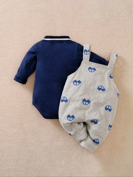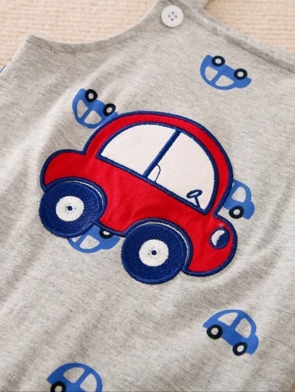 Yierying للاولاد الاطفال بوديسوت & سيارة مطرز جمبسوت بحمالات